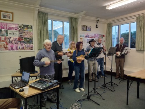 A Great Rehearsal Session – Everyone is welcome. If you would like to learn to play the ukulele, then free tuition is given.